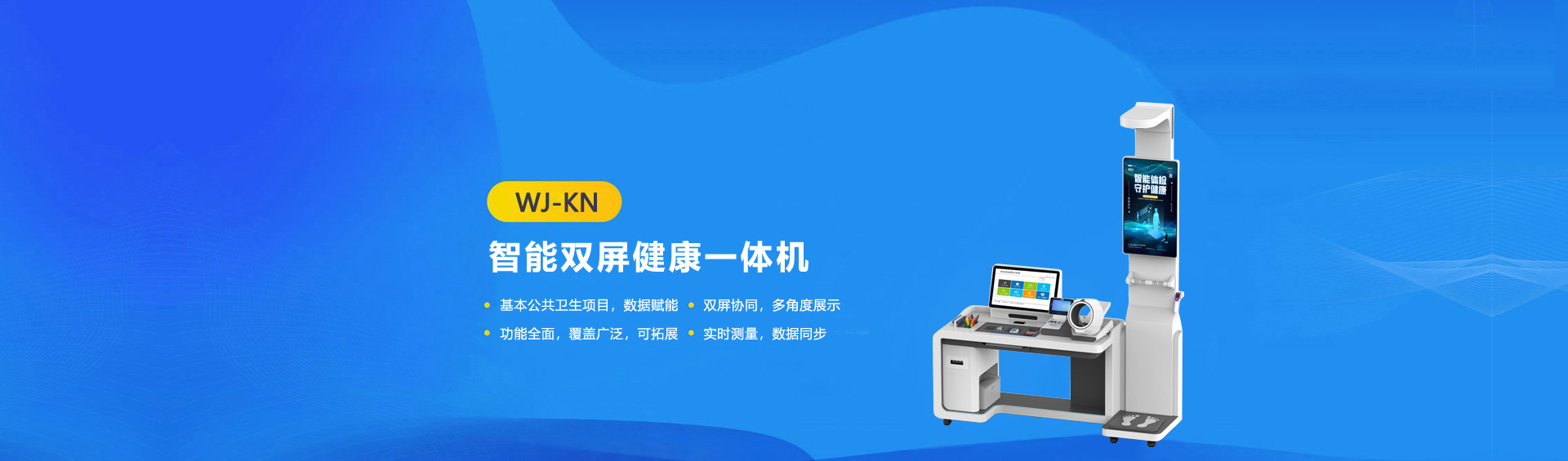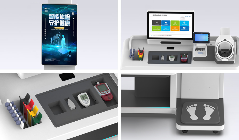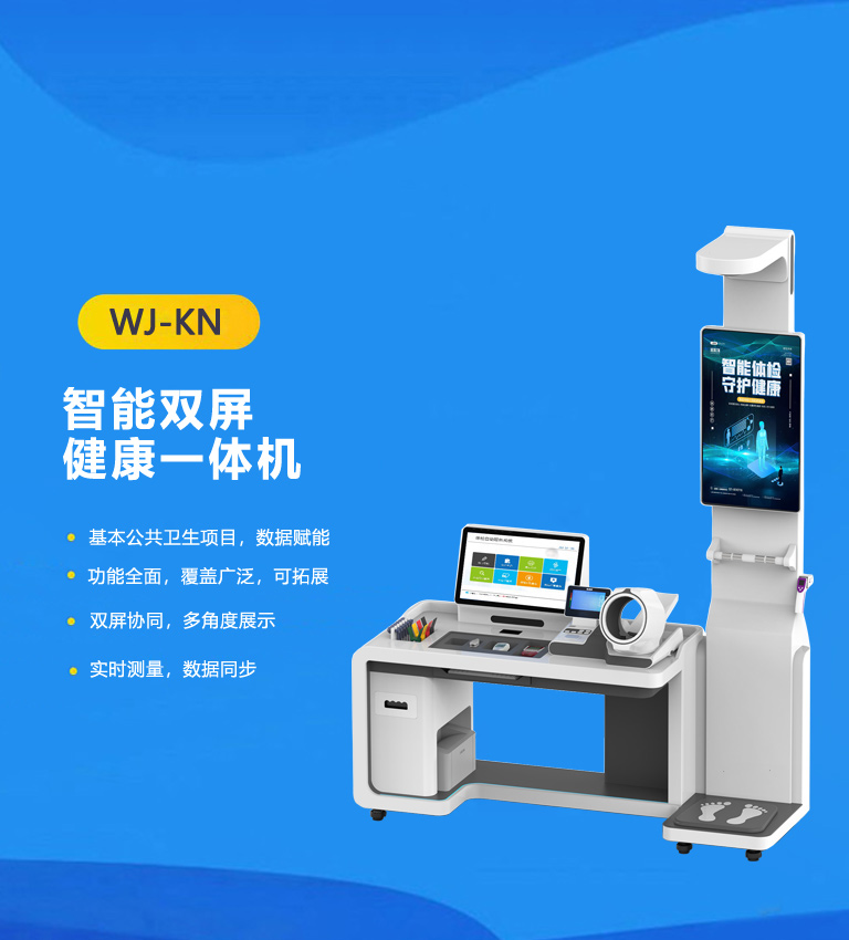 32+21.5寸双屏协同,多视角展示效果 集成多种检测功能,满足基层卫生服务需求 全程语音引导,实现一体化测量 设计医用万向轮,移动灵活便捷